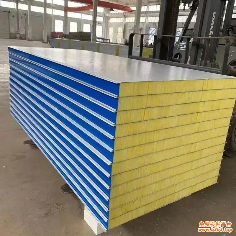 岩棉彩钢夹芯板产品特点:防火性能hao,岩棉物为内芯层或boli纤维,可heshi任意防火等级要求